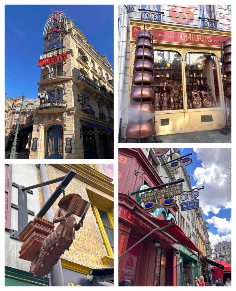 We had been looking forward to seeing the design details, and it did not disappoint. The streets felt alive, filled with colors and movement that made us slow our pace almost immediately. I pointed out architectural touches that went far beyond impressive. Amanda, wand in hand, scanned for familiar magical elements and opportunities.